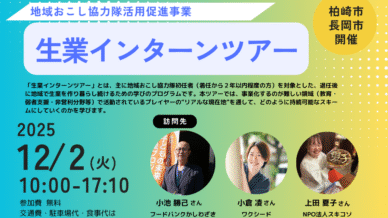 「生業インターンツアー」とは、主に地域おこし協力隊初任者(着任から2年以内程度の方)を対象とした、退任後に地域で生業を作り暮らし続けるための学びのプログラムです。本ツアーでは、事業化するのが難しい領域...